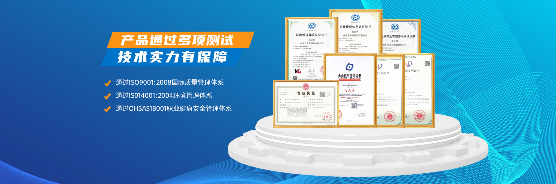 - 焦作市富泉塑膠有限公司,創立于1995年,是一家集研發、設計、生產、銷售為一體的大型管材企業。公司位于太極故里、黃河之濱一一河南焦作溫縣。公司占地128畝,現有職工210余人,其中具有中技術職稱的19人。生產、檢驗設備58臺(套),包括PVC實壁管生產線11套、PE實壁管生產線12套、HDPE雙壁波紋管生產線6套、PVC雙壁波紋管生產線5套,檢驗設備14臺(套)。主要產品有:Φ20mm-630mm、各種壓力規格的PVCU、PVC-M、PE給水管材,PVC-U節水灌溉管材,HDPE燃氣和礦用管材,DN200-800mm的HDPE、PVC雙壁波紋管及各種噴灌、滴灌工程材料。承接大中型市政供排水、飲水安全及節水灌溉等工程?! 「蝗苣z公司重視產品的質量、安全、環保和節能,在同行業中率先完成了“新華節水產品認證”,全方面通過ISO9001:2008國際質量管理體系、IS014001:2004環境管理體系和OHSAS18001職業健康安全管理體系的一體化導入,并建立起規范的現代企業管理體系。公司以“質量”為先導,采用質量跟蹤、多環節把關的方法,組建具有行業水準的企業技術檢測中心,常年委托水利部節水灌溉設備檢測中心、河南省產品質量監督檢驗院對產品跟蹤檢測,并由中國人民保險公司承保產品質量。公司連續多年被河南省水利廳確定為“安全飲水設備、節水灌溉設備”定點生產企業,并獲得“中國名優產品”“質量、服務、信譽AAA企業”“河南省**產品”“河南省水利企業”“河南省守合同、重信用企業”等榮譽稱號?! 「蝗苣z公司堅持“用戶為上”的服務理念,長期以來,全方面關注客戶價值,不斷提升服務水平。服務隊伍常年為客戶的產品設計、施工、安裝提供合理的方案和全程細致、周到、**、快捷的技術服務。公司自成立以來,一直堅持以人為本的宗旨,塑造企業形象,并致力于新產品的開發,憑借雄厚的技術開發能力,先進的工藝制造流程,嚴格的質量管理保證體系,優良的售后服務網絡,已成為河南省大的飲水、灌溉及排水管材設備制造商。產品暢銷全國,而且還以公司雄厚的綜合實力在業界中占據著重要的地位。